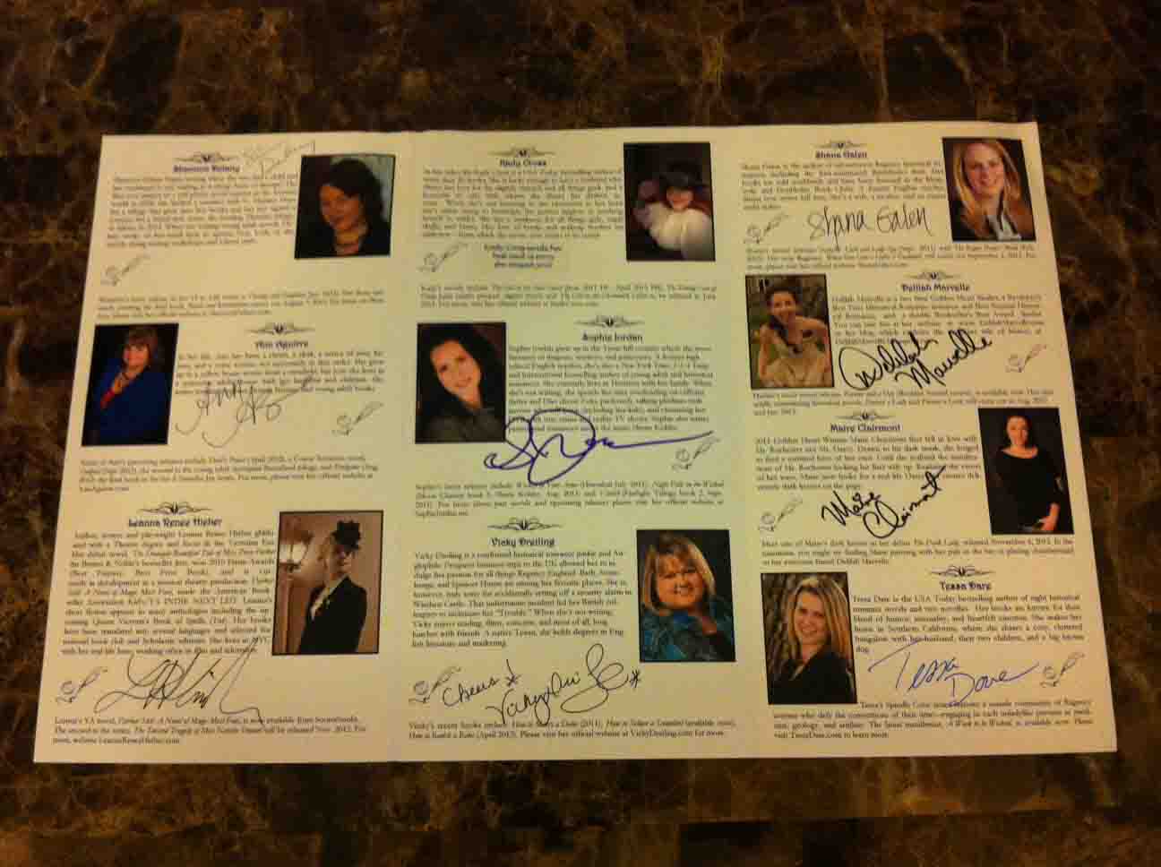 What is that? That's a big card of autographs I collected at the big RT Book Fair. But I'm not just sharing it to brag (yes, I did meet and chat with every one of those authors PLUS others which was way cool). I have a story to tell (after all, I'm a writer) and it begins several months ago.