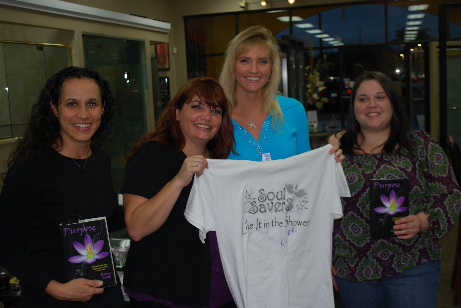 I will be in one of the showers in their showroom signing books. And it's all for a good cause - Team Ta Ta Trotters and the fight against breast cancer! We'll have both Promise and Purpose available for purchase, as well as Special Edition Soul Savers T-Shirts.