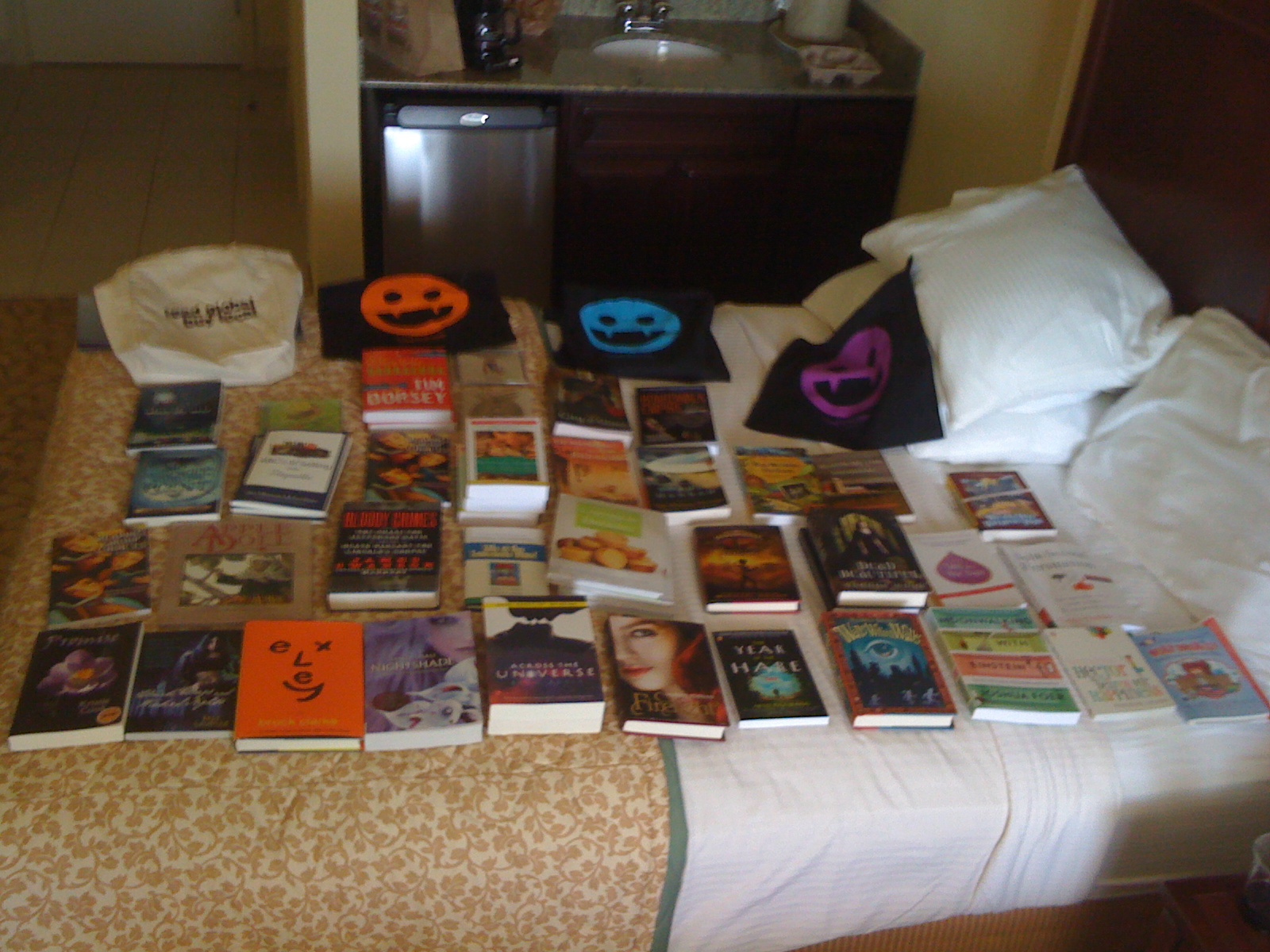 My own personal loot...spread out...and not including tote bags and other fun items. Yes, those are Nightshade and Across the Universe ARCs!!! And many more I can't wait to delve into!