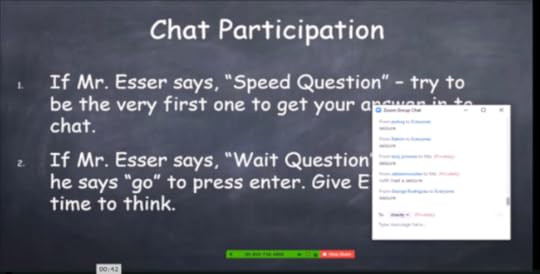 But also notice Joshua’s pacing. Even though he’s brilliant at dissolving the screen, Joshua is also all about value. He’s not wasting time. Love the way he moves right to the Do Now and gets students down to it. One of the things we advise teachers to do is to have students actively engaged in doing an active task within three minutes of the start of class. If you start with a lot of talk you risk sending a clear message about the passive nature of online learning.