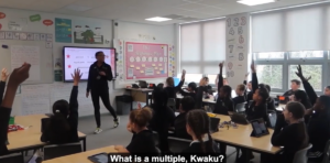 Charlotte starts class with her first question right away. “Ok, let’s refresh our memories and go through some of our key star words,” she says, cueing her students that they will be doing Retrieval Practice. Then she adds: “Talk to your partner. What is a multiple?”