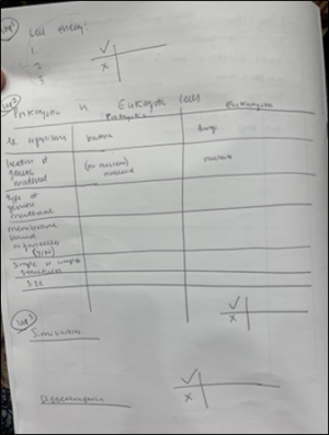 Note her ‘laps’ – these indicate when she will ‘lap’ around the room and what she will be looking for. In lap 1, she’s going to remain laser-focused on looking for the 3 components of cell theory, even if a student has moved onto the next part of the task. We think this is supportive in a few ways: