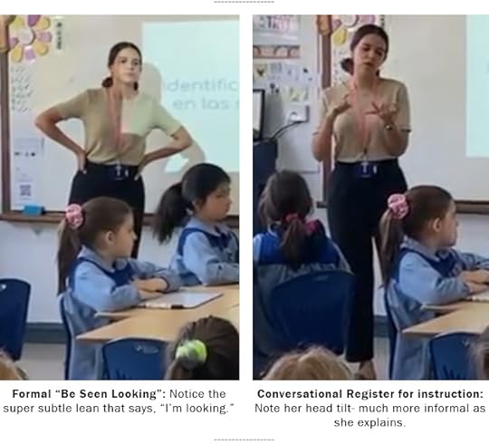 Yes, that’s right. He is providing an example right out of TLAC- using Habits of Attention (the technique in which I discuss how important eye tracking is to attention). He is “controlling student’s bodies” even in the midst of telling us how wrong and inhumane it is.