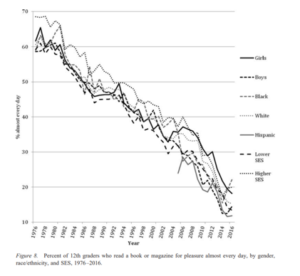 Decline in independent reading by 12th graders; 1976-2016 (ie before Tik-Tok and the last round of distraction super engines.