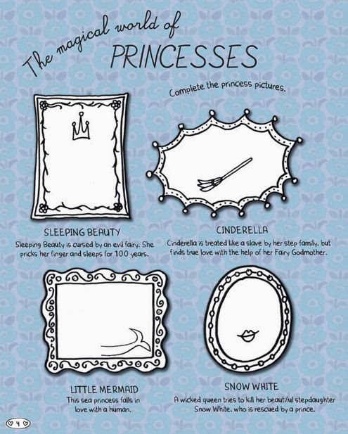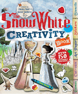 . Or if you are in the UK, here's your link. And, no, it's not because it is Snow White. If you've been reading here, that is not one of my absolute favorite fairy tales although I have great affection for it.My love for this creativity book comes from the illustrations, which were adapted from a picture book of Snow White illustrated by Zdenko Basic and Manuel Sumberac. The picture book illustrated by Basic and Sumberac is not published in the US yet, but it is available in several languages around Europe, all of which are also accessible in the US through third party sellers. I'll post more about that book next. For now, back to the Creativity book. I have images to share...