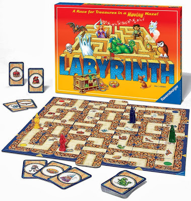 Labyrinth from Ravensburger is a shifting maze board game for players ages 8 and up. Race for treasures in the moving maze and try to foil your opponents! Players strategically shift the walls of the Labyrinth’s maze to find the perfect route to their treasure card. The first player to collect all their treasures and return to the starting point wins.