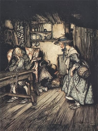 . But with this one I also found another version from Poland for the book titled, "The Bear in the Forest Hut." According to Uther, the earliest known documentation of this tale is the 19th century, so its history is either shorter than many or just not documented. Here is Arthur Rackham's illustration for the story: