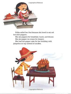 And, for concerned parents, neither Grandma nor any other character is ingested in this book. Little Red Hot saves herself although she gets a good warning of danger from Pecos Bill. All ends happily and some pepper knowledge is shared along the way in both the text and the author's notes.