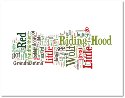 You can be creative/waste time today at either Tagxedo or Wordle and make your own images with fairy tale texts. If you make anything great to share, please add the link to a comment on this or the Riding Hood post. I'm rather tempted to make this into a contest!