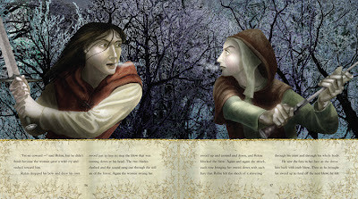 by David Calcutt (Author), Grahame Baker-Smith (Illustrator) is a new book and just what I like in a Robin Hood book, beautiful illustrations. I love it now and would have adored it as a kid. I haven't read it, just seen the illustrations, but that's enough to add it to my wishlist. There's not been enough Robin Hood for kids in recent years in my opinion especially considering the success of BBC's Robin Hood and Merlin series. I prefer the Merlin series but prefer the Robin Hood legend.