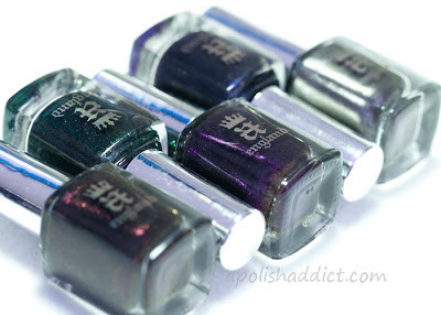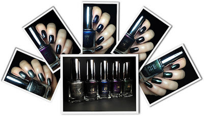 The best places for now to see how the polishes look is at the Fashion Polish Blog (one image below) and at the A Polish Addict blog (source of picture at top of this post). The polishes can be ordered from the A-England site as well as Llarowe from whom I have ordered in the past with success.