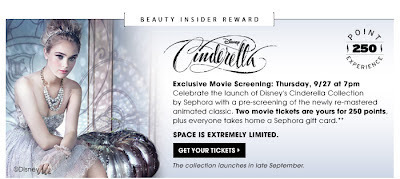 If you shop at Sephora and are a Beauty Insider, you can also get passes for a screening of the Cinderella re-release. The offer comes in a Sephora email.