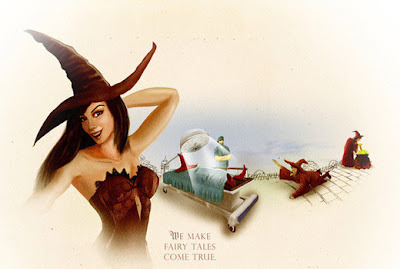The Evil Witch also has major work done. After years of having an old face with the trademark pointy, witch nose, she comes out as a young, sexy vixen, with a perfect nose. There is no sexual discrimination in their campaign, the Frog Prince is part of their makeovers. He goes in as a frog and comes out as stunning prince....which is similar to the fairy tale, but the story doesn't involve the nip and tuck.