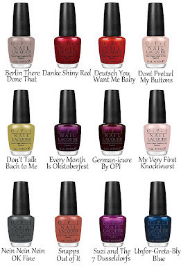 I think most of you regular readers are aware of my nail polish mini-obsession. I say mini only because nothing compares to my fairy tale and folklore and reading obsessions. OPI Nail Lacquers usually offer at least one collection each year inspired by a country. They have just announced that the 2012 Fall Collection is inspired by Germany.