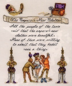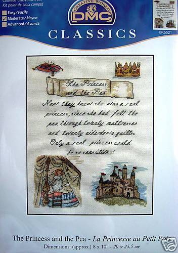 Today we have a series of fairy tales kits by DMC with three tales by Hans Christian Andersen. I tried to discover if there were more of these, but three is fun considering we get a Snow Queen and an Emperor's New Clothes along with the ever popular Princess and the Pea. I also like the usage of quotes in the design since words are always important to me. I found most of these on Ebay through international sellers which makes me wonder if they are a European exclusive.