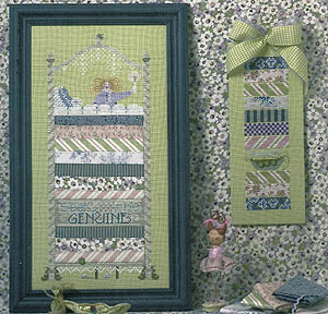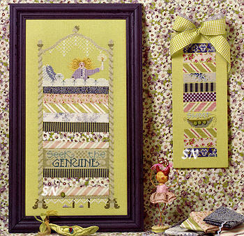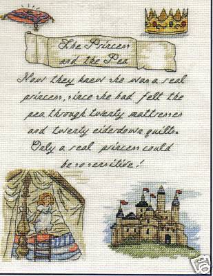 I shared a strange Princess and the Pea cross stitch pattern yesterday and here's another that is currently in print and available from most sellers. I found it originally at 123stitch. Well, it's not strange as much as unusual, too. What is going on with her hair? She really is having a white night. But that bed is awesome. And the image is too small to see what she is holding in her hand. I like the "Seek the Genuine" message, too. Although I've always taken issue with what is genuine in this tale, of course.