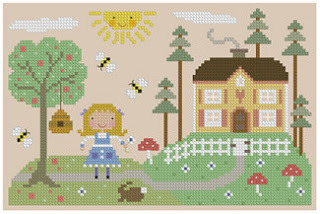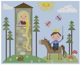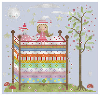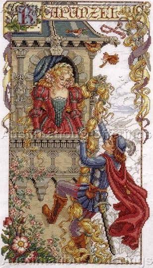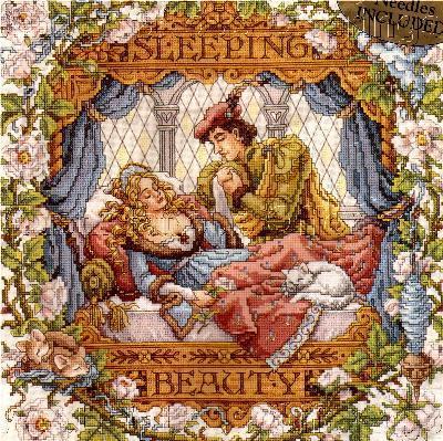 These are two long out of print patterns by Sandy Orton which Austintatious Offerings has listed at a hefty price that still tempts me. The Rapunzel pattern is my favorite--there's even the scissors details that delights me--but I like the Sleeping Beauty as well. Actually, even Rapunzel's expression appeals to me since she appears to know exactly what is going on. I would love to own both, but the price is a little out of my price range right now. Too bad they haven't been reprinted during all of this fairy tale popularity right now.