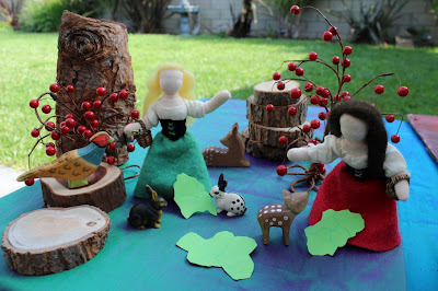 Anyway, when it comes down to it, this is one of the best illustrated versions of the story I have seen and all created for a children's party by an enterprising Waldorf-loving mom who also makes dolls for her Etsy store. The selection is small right now, but I want a prince or even a Snow White and Rose Red of my own. Perhaps after the move...