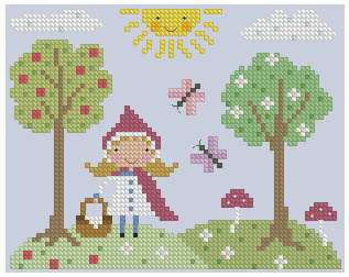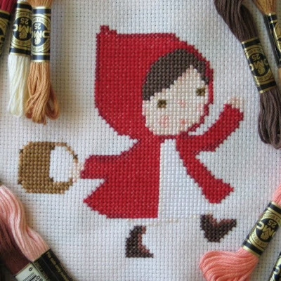 Here is a sweet pattern for a cross stitch Little Red Riding Hood presented by lilredbuttonboutique at Etsy. This has been one of my favorites for Riding Hood. This would work well on a larger sampler, too.