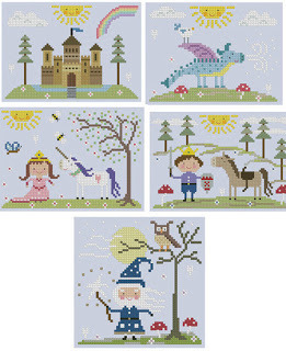 Here is a collection of fairy tale cross stitch patterns available through Etsy seller Theflossbox. The Princess and the Pea and Rapunzel ones are my favorites. These would make a great series on a nursery wall. I like them because they are simple enough to finish fairly quickly. And they'd be very easy to adapt to a desired color scheme, too.