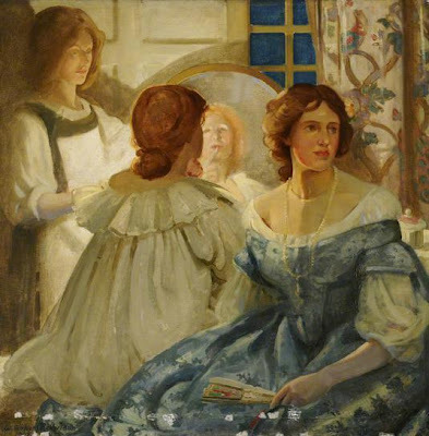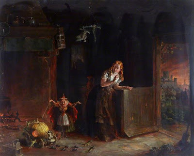 Cinderella by Joseph Albert Colquhoun MorrisonOil on canvas, 39.3 x 31.8 cm Collection: The Stroud District (Cowle) Museum Trust Collection Now isn't that an unexpected time period for a Cinderella? Anyone want to analyze her clothes and figure out the date on this one? Morrison studied from 1901-1904 and had a long career--at least through 1931 but I cannot find easy dates in a quick search.