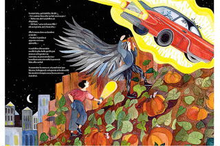 The grotesque is accepted just a little bit more for French kids in their published literature in my experience. After all, France still embraces Donkeyskin, too, yay for them. From what I can see from the online images of the French version, the English translation is pretty literal of the original. But even the French reader reviews have a few warnings of the book being not suitable for the youngest kids. So I'm not trying to stereotype too much here either. Let's just say I was not surprised to see that this was a book in translation after my experiences with international fairy tale publishing...