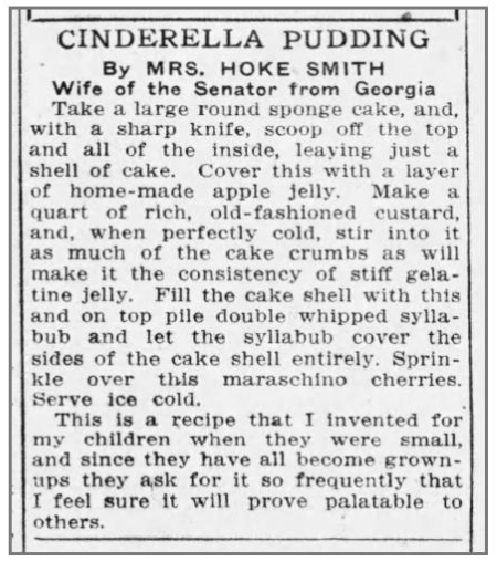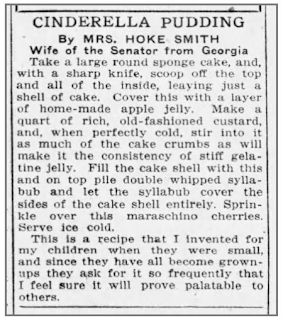 She didn't learn much, but along the way, she found this recipe for a Maryann style cake with a fitting title for the SurLaLune blog. I was tickled by it because I haven't read the word "syllabub" in all too long I realized. A very English recipe but found in Florida in 1914 since pudding as a synonym for dessert (a pudding that isn't American pudding a la tapioca or such) is even rarer these days, but perhaps more common than I realized in the United States in 1914.
