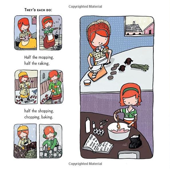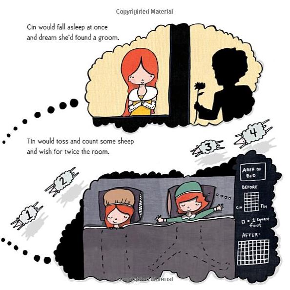 Twinderella, A Fractioned Fairy Tale by Corey Rosen Schwartz (Author) and Deborah Marcero (Illustrator) was released earlier this month and promptly entered a small, small subgenre of books that use fairy tales to teach math concepts. If you were paying attention, you noticed that this book is not subtitled a "Fractured Fairy Tale" but actually a "Fractioned Fairy Tale." Got ya, didn't they?