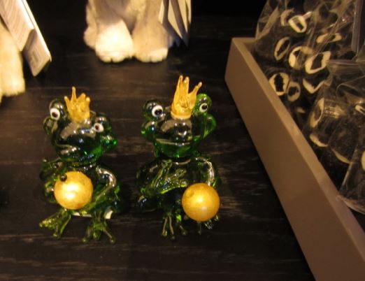 First discovery were the little glass Frog Kings pictured above. Which made me laugh since Frog Kings are so ubiquitous and have nothing to do with Hans Christian Andersen. But it's not surprising that the Frog King is the first tale to be found in the Grimms' collection. I liked this version of the frog since he also holds the gold ball that is rarely remembered from the story.