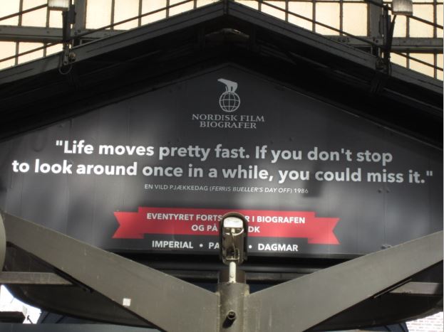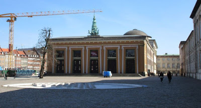 And on a similar note, I saw many posters that day advertising a Danish performance of "Into the Woods" at the Tivoli which is essentially the performing arts center of Copenhagen as well as a famous amusement park. I got a bad picture of it--the goal was to get it before several people walked in front of me and to avoid glare. Not very successful. John and I are reflected in the lower right corner.