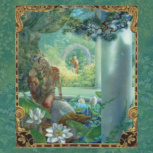 I have illustrations to share, which are from the book, but these images are from the 2017 calendar--Beauty and the Beast 2017 Fairy Tale Wall Calendar--derived from the book which is available right now and may sell out since these calendars tend to do so. So I am sharing the book and the calendar now. In case you want both.