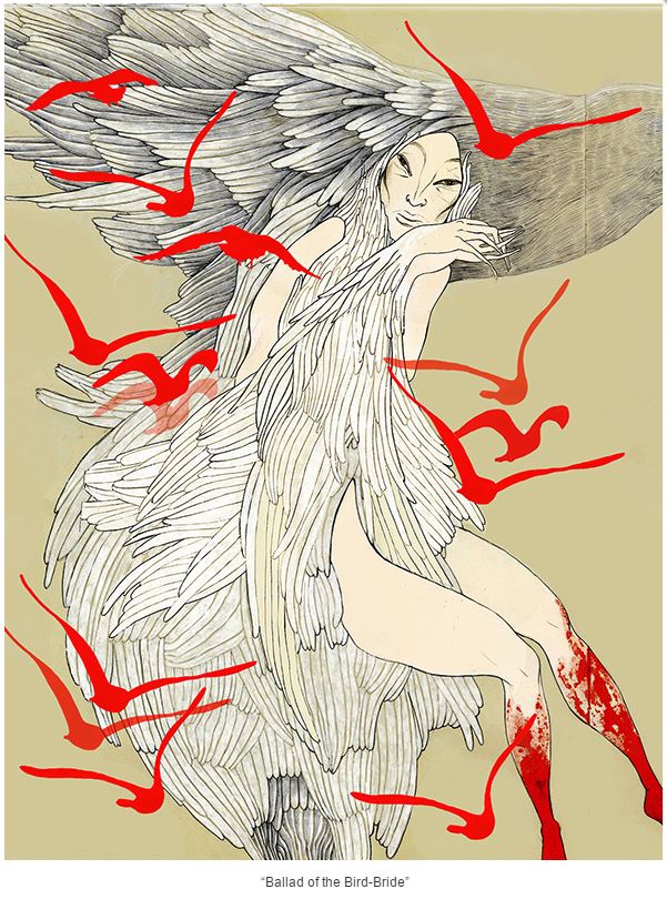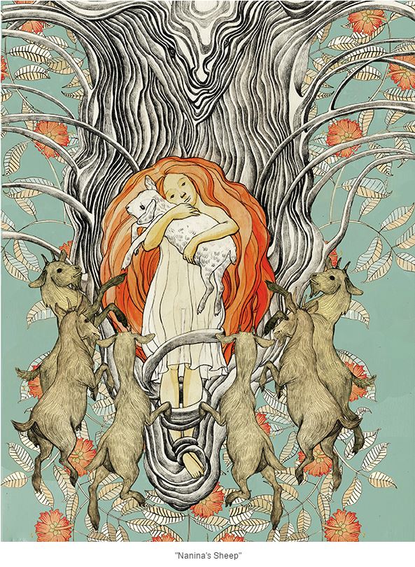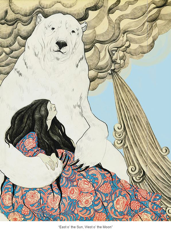 Schacker and Jones choose stories that represent several centuries and cultural perspectives on how animals think and move. In these ten stories, rats are just as seductive as Little Red Riding Hood’s wolf; snakes find human mates; and dancing sheep and well-mannered bears blur the line between human and beast. Stories range in form from literary ballads to tales long enough to be considered short stories, and all are presented as closely as possible to their original print versions, reflecting the use of historical spelling and punctuation. Beasts move between typical animal behavior (a bird seeking to spread its wings and fly or a clever cat artfully catching its prey) and acts that seem much more human than beastly (three fastidious bears keeping a tidy home together or a snake inviting itself to the dinner table). Kusaite’s full-color artwork rounds out this collection, drawing imaginatively on a wide range of visual traditions—from Inuit design to the work of the British Arts and Crafts movement.