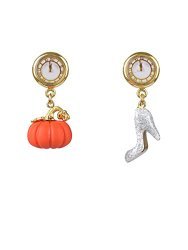 Over two years ago I shared Peau du Bete by Les Néréides N2 and back in 2009 I shared Little Red Riding Hood Jewelry. I found those in Paris during various trips. I am happy to say that Les Néréides is now more readily available in the U.S. with its own site. The lines in the U.S. are different from what are available in Europe. Right now, the U.S. site is offering the Glass Slipper Cinderella line. I am sharing fourteen pieces here. There are fun and kitschy, no doubt about it. But the designs are so clever. I like the horse transformation loops and the Cinderella who is NOT Disney.