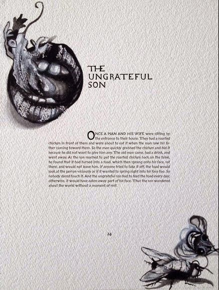 I am an artist in NY and have just put out my first book, picturing 36 tales of the unsanitized Grimm fairy tales. It has hand-drawn marginalia throughout, 75 color drawings--a third of which are on view at The Drawing Center now in Soho through late June--and has an introduction by Jack Zipes, whose translations I also used, and essays by feminist art historian Linda Nochlin and the curator at The Drawing Center, Claire Gilman and a conversation with theater director and designer, Julie Taymor. It is published by Damiani and distributed by DAP. It was a blast to do and is the largest collection of Grimm's every illustrated by a fine artist. I found them to be such remarkable stories, especially as the originals from 1812-57 are so unknown in their real forms.