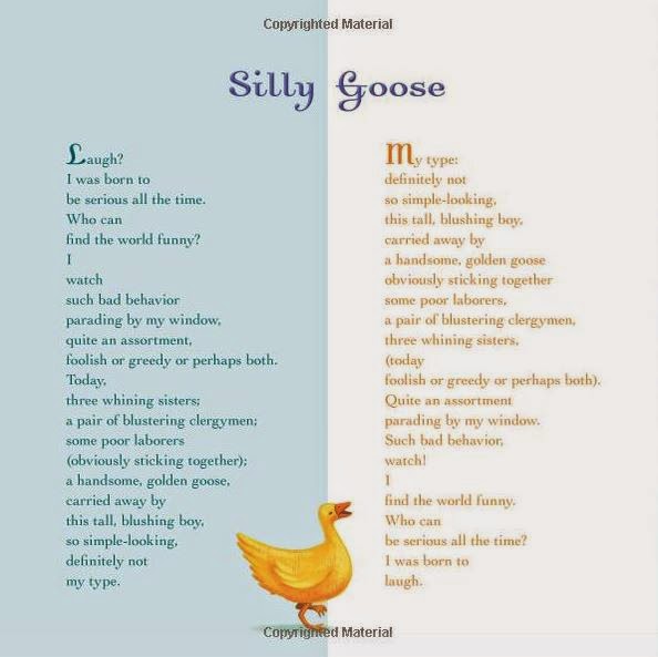 , are favorites on my fairy tale poetry shelf. I have some sample pages from the second book below with some of the reverso poems to read. Reversos are poems that read backward and forwards (by lines) with some punctuation changes and doing so reverses their meanings and/or perspectives, too. They are so clever and fun and I adore these.And the illustrations by Josee Masse fit the illustrations perfectly and colorfully. These should be owned in hardcover. It's the best way to enjoy them and that's from a confirmed ebook addict.