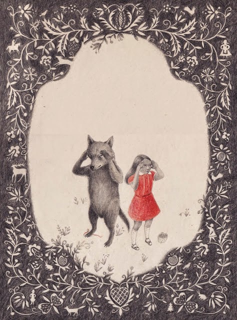 illustrated by Joanna Concejo is a French picture book of Little Red Riding Hood. I've not seen the book itself, but I discovered some illustrations that may appear in the book on Concejo's blog here and here. The illustrations are interesting and I am curious as to how the tale is presented, but the description and reviews are for other editions of the tale.