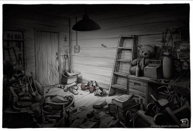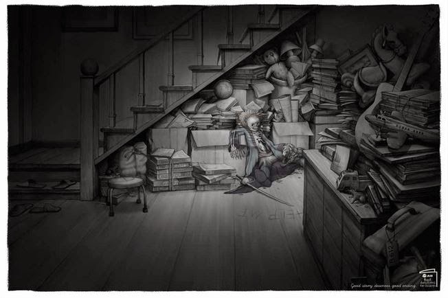 Not a brand new concept if you've been reading the Fairy Tales in Advertising features here on SurLaLune for a while but some really dark illustrations this time. And The Little Prince is a surprise. Another one that would be lost on most of the audience in the U.S. but works in countries where French influence is stronger. Didn't expect it in Thailand, I admit.