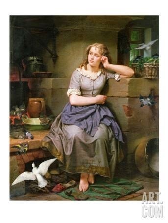 The artist for Cinderella and the Birds, 1868 is unknown. What appealed to me the most in this painting? That Cinderella looks healthy, that perhaps she has some benefits from her manual labor. That was my first impression.