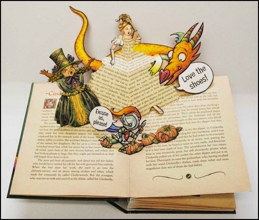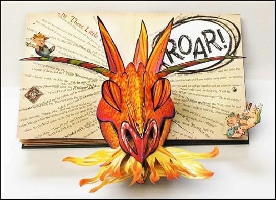 I don't even remember fairy tales being mentioned in the description when I ordered it. Several are found within, but not really to enjoy for reading, but for viewing. Essentially, a dragon and knight race through the fairy tale book with unexpected and increasingly messy results that mean fun for us the reader/viewer. And while the pop-ups in his books are always enjoyable for all ages, this book actually has very little readable text, so it reads well with little ones, too, unlike some of the other pop-up fairy tale offerings available. The pop-ups are surprising but there is an extra twist ending, too, which will delight readers. And make you wonder about your assumptions at times.