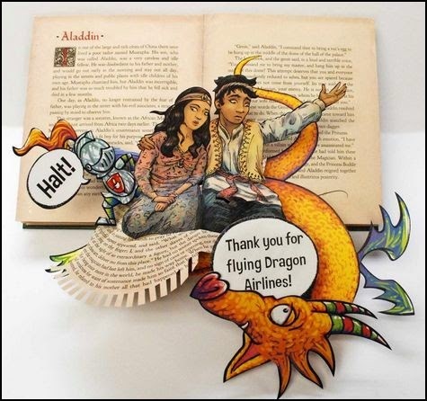 Since this is technically a fractured fairy tales book, a knowledge of fairy tales will help for young readers but even a basic familiarity with Disney versions of the tales will suffice. And it's fun to have Aladdin represented in a book like this, too, where it seldom is. Its illustration is most reminiscent of Disney, actually as you can see in the image I am sharing here.