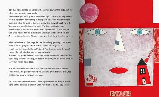 The Czech artist Květa Pacovská renowned for her unique illustration style, tackles this classic tale with her usual creative flair. As the book progresses, she builds up almost musical motifs of theme and variation as the two great characters—the fearsome wolf and the innocent Little Red Cap—make their famous meeting. With stunning originality, Ms. Pacovská invites us to see this well known tale in a totally new way.