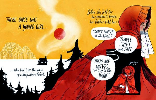 by Emily Carroll (Author, Illustrator) is released today. I have posted previously about The Hare's Bride by Emily Carroll, a webcomic. Now some of Carroll's webcomics are available in print for the first time. They are billed as horror tales, so be aware. As you can see below, one is inspired by Little Red Riding Hood.