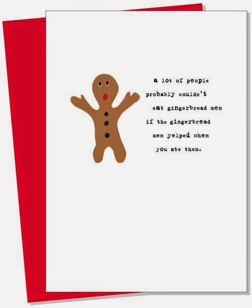 It's actually a holiday card and says "Happy Holidays!" inside, but we don't care about that here where the Gingerbread Man allusion is welcome any time of year. And we don't really expect me to remember this in December, do we?