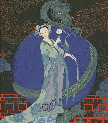 And since I was sharing beauties with dragons today, I thought I should share this illustration, Lady with a Dragon, by George Barbier.