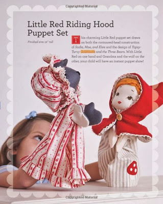 by Jill Hamor has some sweet designs for a few fairy tale characters, Little Red Riding Hood puppets and a Goldilocks and the Three Bears topsy turvy doll. I thought I would share images. And wish I sewed so I could make the Red Riding Hood set. But I have enough time demands and don't need a new hobby!