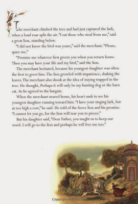 by Jacqueline K. Ogburn (Author), Laurel Long (Author, Illustrator) is unfortunately out of print, but still readily available through used booksellers. The picture book is based upon what is perhaps the best known Animal Bridegroom tale from the Grimms, The Singing, Springing Lark. It is an ATU 425A The Animal as Bridegroom, the same tale type as East of the Sun and West of the Moon. There are eleven Animal Bridegroom tales from the Grimms in Beauty and the Beast Tales From Around the World