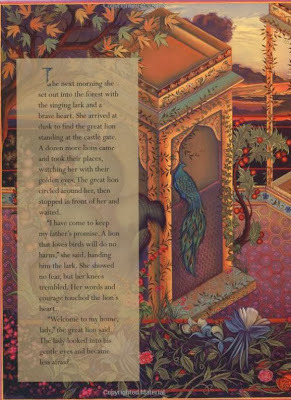 including this one.It is a gorgeously illustrated book, one of the lushest versions of Beauty and the Beast around with vibrant jewel tones and detailed renderings. The style is reminiscent of Kinuko Craft who has many fans here at SurLaLune. It's a shame it is out of print.
