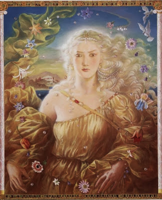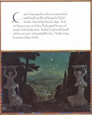 by M. Charlotte Craft (Author) and Kinuko Y. Craft (Illustrator) is one of the Beauty and the Beast fairy tale titles still in print. There aren't many picture books of Cupid and Psyche to be found and this is a gorgeous option with Kinuko Craft's artwork. I've discussed the tale repeatedly here and its influence and importance in the ancestry of Beauty and the Beast. So I'll just sit back and let you enjoy the pictures today.