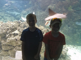 As we were looking into the pool, a shadow passed by on the opposite wall, looking exactly like a shark (I’m sure it was probably one of the fish swimming close to the light), but it freaked my son out a bit. I thought it was super cool.