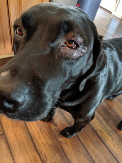 In my dog's defense, he was sick. Poor baby had a staph infection around his eye, so he had to go onto various medications. One of them caused him to be super thirsty, so he was drinking a lot of water. Which meant he had to pee a lot.